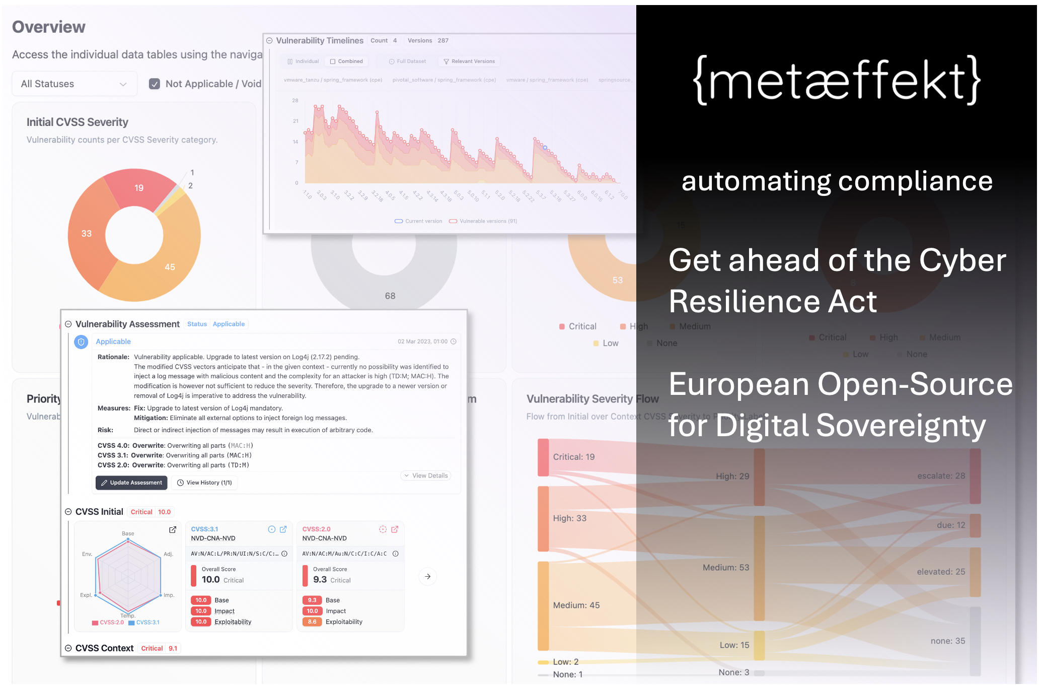 Die {metæffekt} GmbH unterstützt und begleitet Unternehmen bei der Inventarisierung und Bewertung der genutzten Softwarebestandteile (Software Composition Analysis). Durch langjährige Expertise und Know-how im Bereich Software-Architektur, Software-Entwicklung, Continuous Integration und License Compliance Management ist die {metæffekt} ein souveräner Partner zur Verstetigung der Inventarisierung, Dokumentation und Risikobetrachtung von Produkten und Projekten im Dialog mit den unterschiedlichen Kompetenzen und Verantwortlichen im Unternehmen.